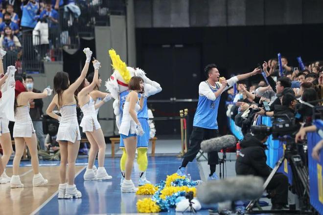 賽場(chǎng)上球員拼盡全力,看臺(tái)上成片藍(lán)色更燃動(dòng)人心!球迷們吶喊震徹場(chǎng)館,分貝儀持續(xù)飆升。環(huán)廊里,霹靂鴨與球迷親密互動(dòng),衍生品攤位前人流涌動(dòng);分貝挑戰(zhàn)啦啦隊(duì)剛拋送完禮物,抽獎(jiǎng)環(huán)節(jié)又掀起歡呼。