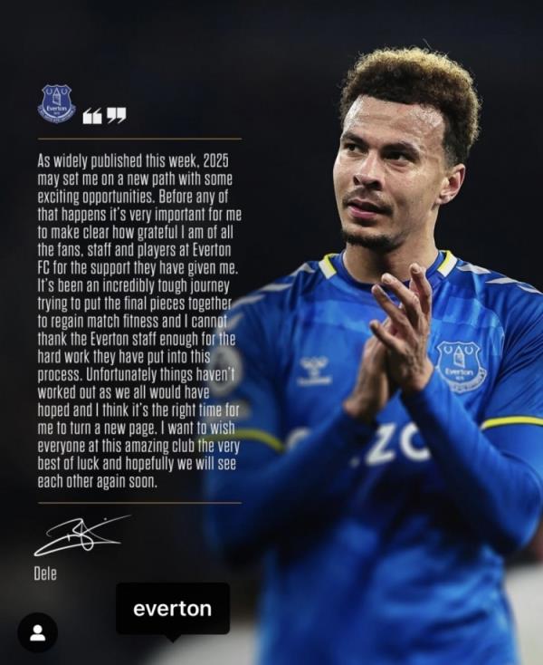 阿里寫道:“正如本周大家廣泛談?wù)摰哪菢樱?025年我可能會走上一條新的道路,因為有一些令人感到興奮的的機(jī)會。在這一切發(fā)生之前,我必須要先明確的表達(dá)一下我對于所有球迷的感激之情,以及埃弗頓所有工作人員以及球員對我的支持。